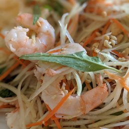 I really like the food at this restaurant. Its a cute little place with a nice clean bathroom. They are very gracious and friendly. Here are my favorites: Beef on a stick Papaya salad from the appetizer section Stuffed chicken wings The waitress is very entertaining and she remembered me. It's not a big place but big enough. There are at least 10 tables in there. don't worry about parking as there is a lot with meters behind the buildings.