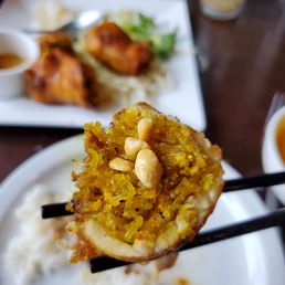 Their menu boasts a wide selection of appetizers, soups, beef, pork, chicken, seafood, curries, vegetarian dishes, and fried rice/noodles. Some standout dishes include the Noum Om Beng cambodian crepe, deep-fried fish cakes, spicy papaya salad, and the Samlaw Machhou Phnom-penh soup. Customers rave about the flavorful beef skewers, chicken wings stuffed with lemongrass, and the fried calamari.